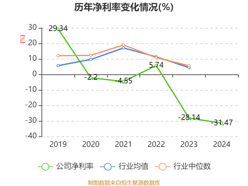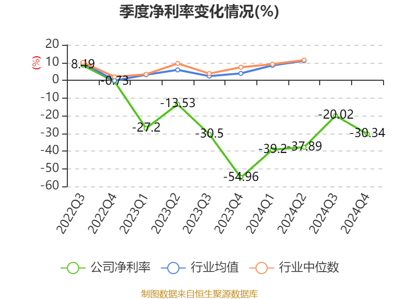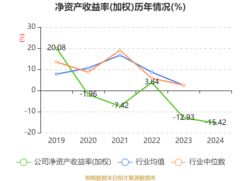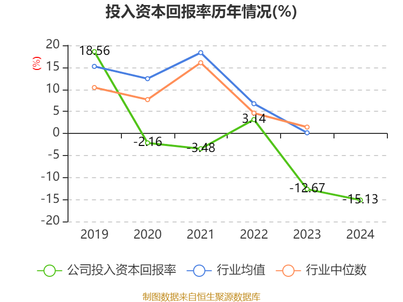 数据显示,2024年公司加权平均净资产收益率为-15.42%,较上年同期下降2.49个百分点。公司2024年投入资本回报率为-15.13%,较上年同期下降2.46个百分点。