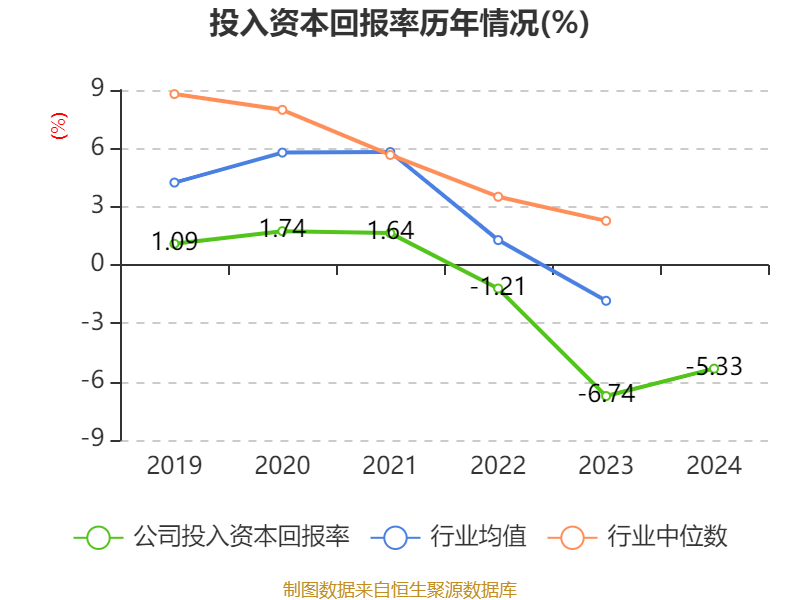 数据显示,2024年公司加权平均净资产收益率为-4.39%,较上年同期上升0.68个百分点。公司2024年投入资本回报率为-5.33%,较上年同期上升1.41个百分点。