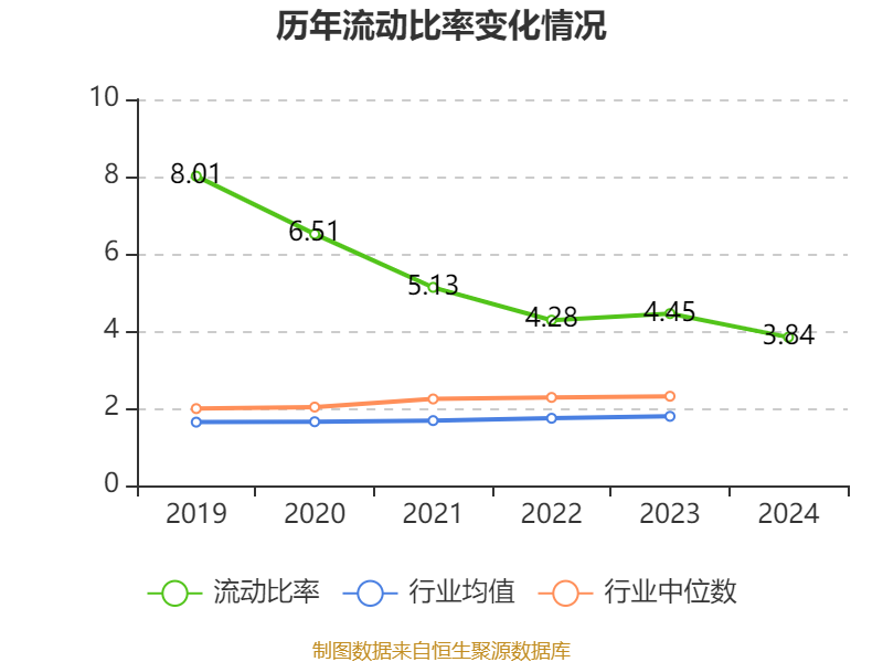 2024年,公司流动比率为3.84,速动比率为3.62。